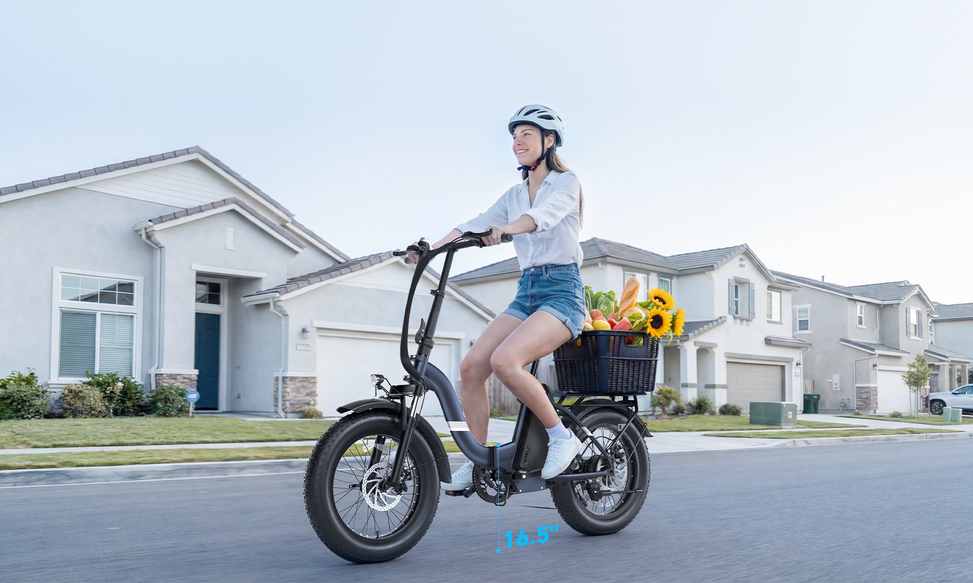 It's about 80cm. A rider who is 160cm(5’3”) tall can ride the e-bike without any difficulties.