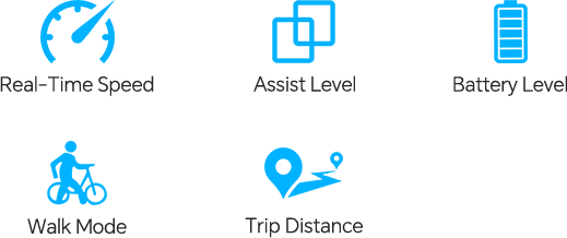 Information: Real-Time Speed, Assist Level, Battery Level, Walk Mode, Trip Distance
