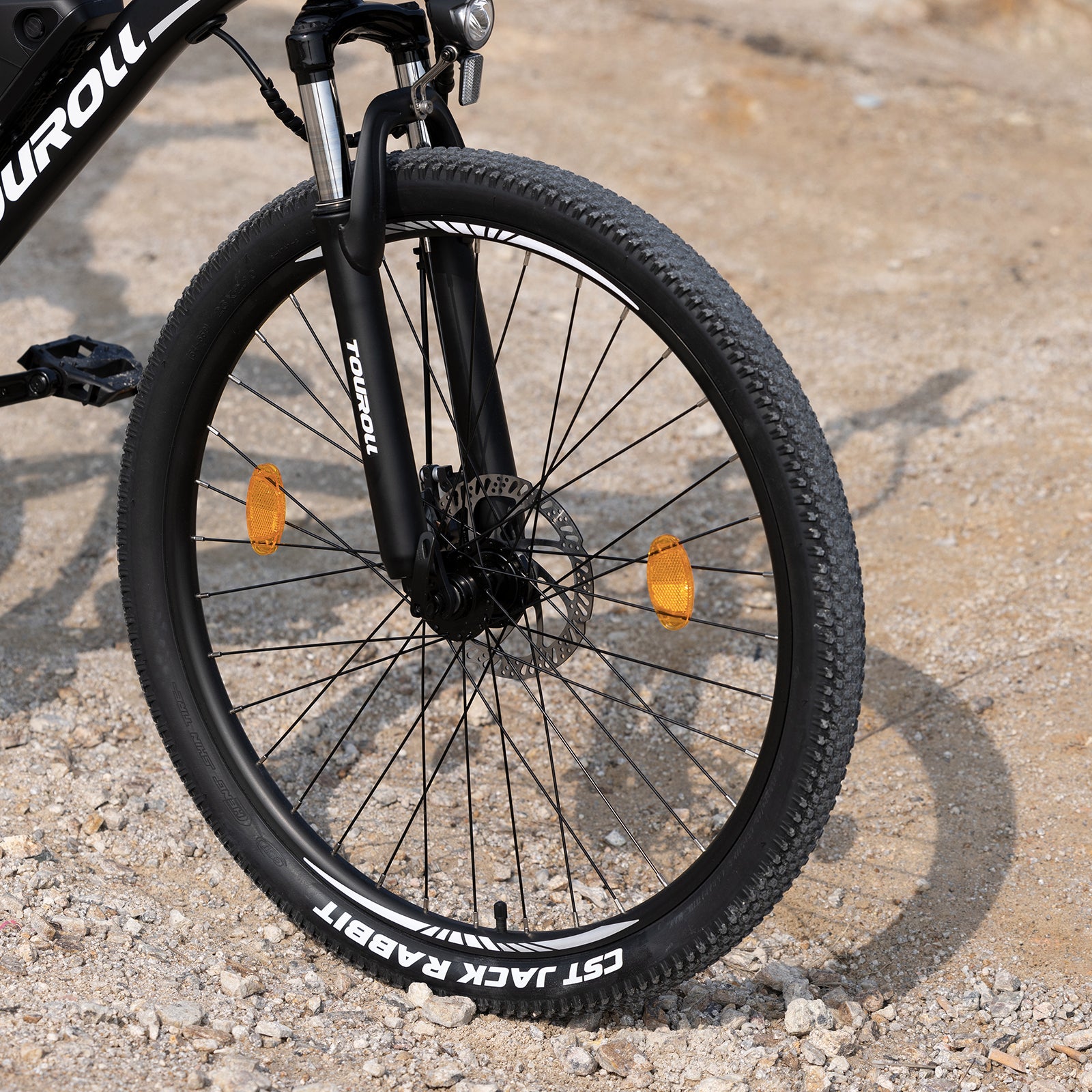 Tackling rough terrain is a snap with CST pneumatic off-road tires. The 2.1-inch wide knobby tires offer excellent traction and shock absorption for a smoother ride.