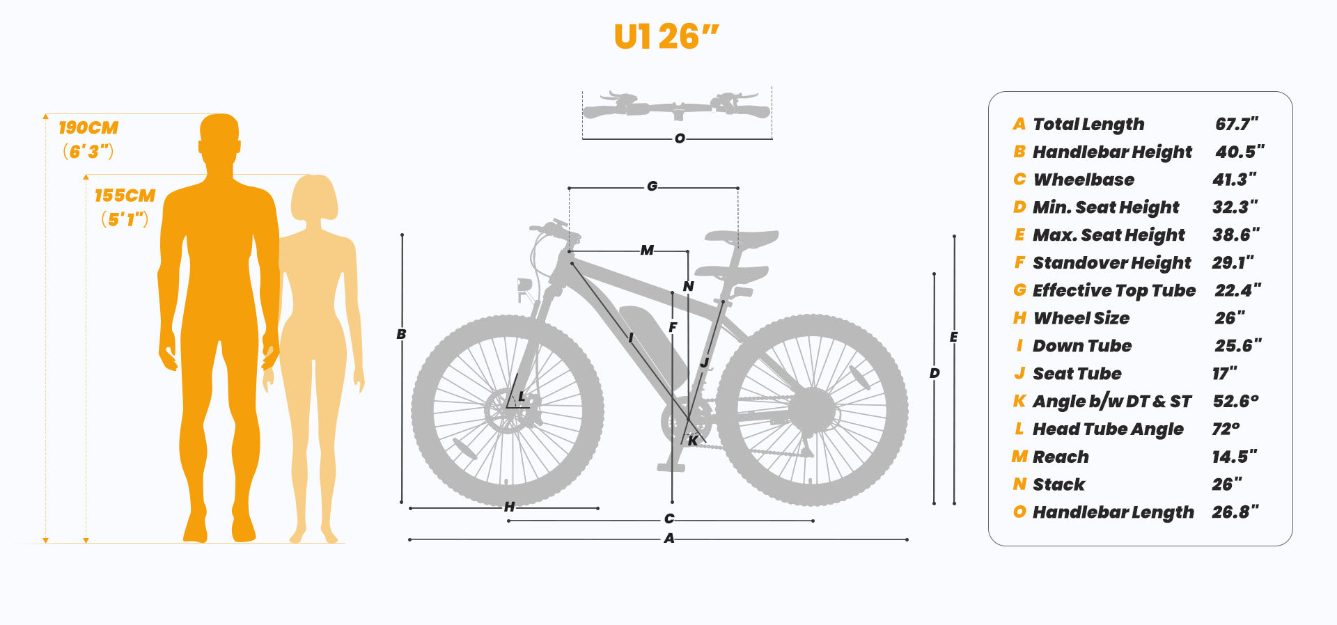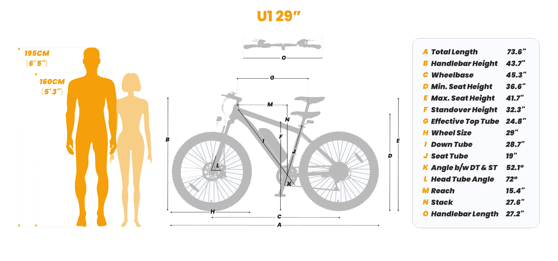 Yes. The recommended rider height of the U1 26 is 155-190cm (approx. 5' 1"-6' 3") and for the U1 29 is 160-195cm (approx. 5' 3"-6' 5").