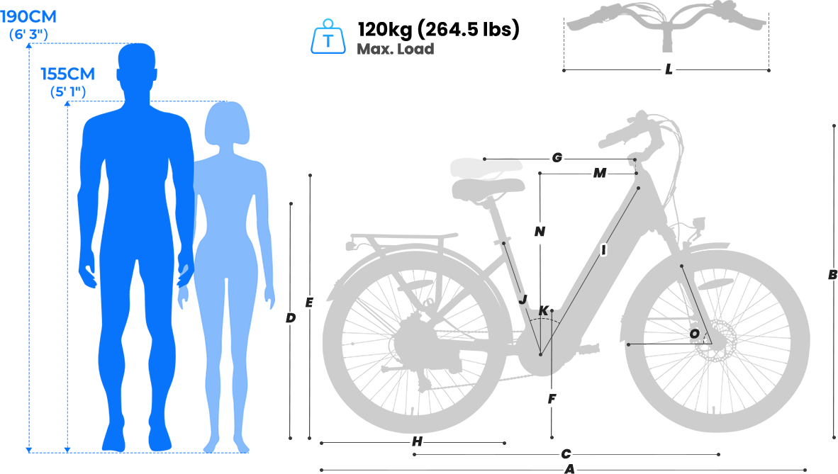 B | Handlebar Height | 43.9-45.1" |