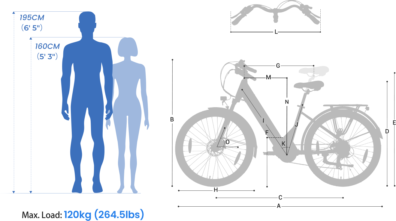 B | Handlebar Height | 42.5-44.9" |