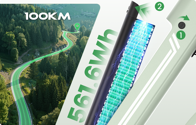 Unlock a worry-free commute with 561.6Wh high-capacity battery.
